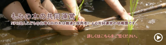 ~いっしょに子どもたちを育てませんか?~ もみの木園は園舎を持たず、地域の里山を拠点に、2~6才の子どもたちが活動しています。 子どもたちが自由に走り、立ち止まる。自分たちの作り出した世界で共に遊び、じっくり育つ。そんな場所が大切だと、私たちは確信しています。それぞれの「子どもの時間」を守る子育てを、私たちと一緒にしませんか?こんな保育は少数派かもしれません。でも保育に限らず、少数派ってたくさんいるのです。私たちの保育は、信頼してまかせられる保育者と 共に行っています。保育時間の子どもの姿を通し、保育者と親が協力して子どもの育ちを支えます。子どもたちの世界を知りたい方、興味のある方どうぞ、お気軽に見学にいらしてください。 保育見学は、随時受け付けております。 |